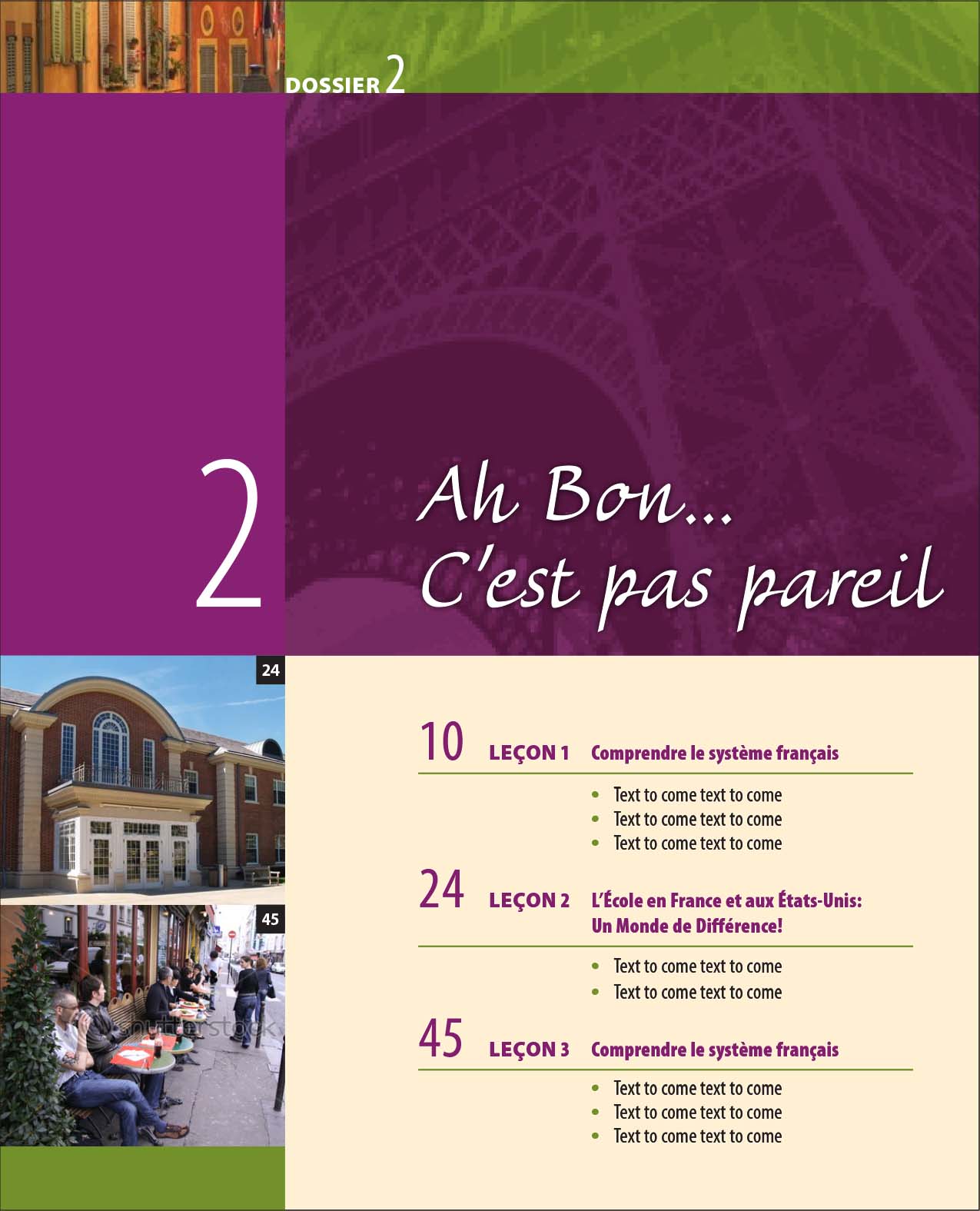 In an effort to compete with larger language publishers, Wayside Publishing was looking for a smart, age-appropriate look for their high school level French textbook. Dinardo Design delivered! The textbook we developed includes clearly organized units built around rich cultural topics, all visually supported to encourage natural conversations. Colorful, engaging learning activities reinforce the development of language skills and lifestyle connections, and the contemporary look keeps students connected. This is just one of the multi-language projects produced by Dinardo Design.