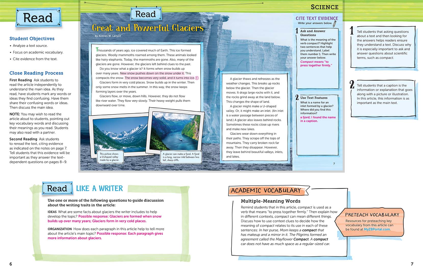 The program includes four student edition, magazine-style workbooks and four annotated teacher editions for second through fifth grade. Zaner-Bloser was impressed by the diligence of our photo research team that met all their critical, content-dependent photography needs. This series offers a high level of engagement, targeted literary solutions, and achieves the Zaner-Bloser mission of fostering joyful learning through creativity and imagination.